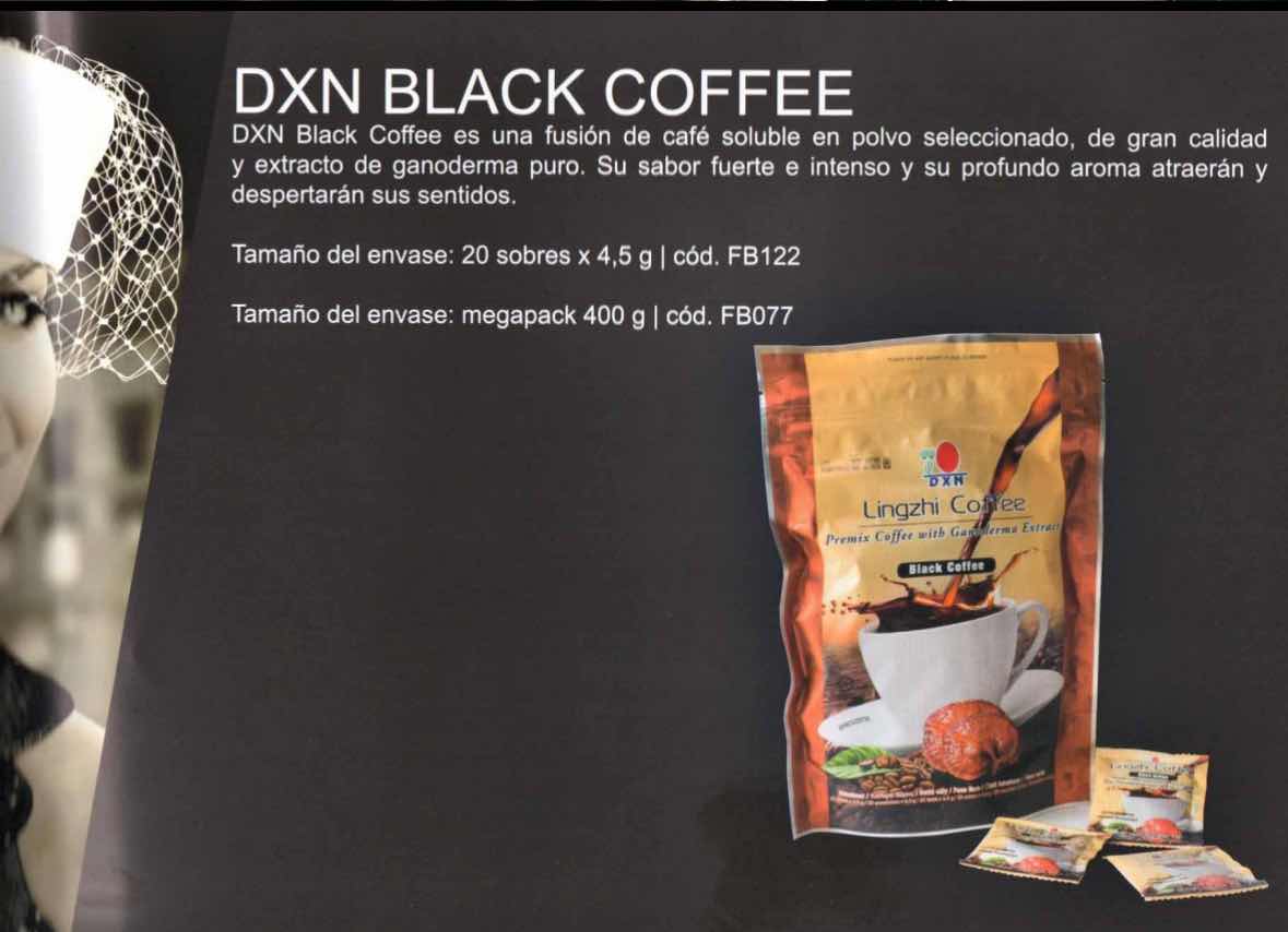DXN Black Coffee es una fusión de café soluble en polvo seleccionado, de gran calidad y extracto de ganoderma puro. Su sabor fuerte e intenso y su profundo aroma atraerán y
